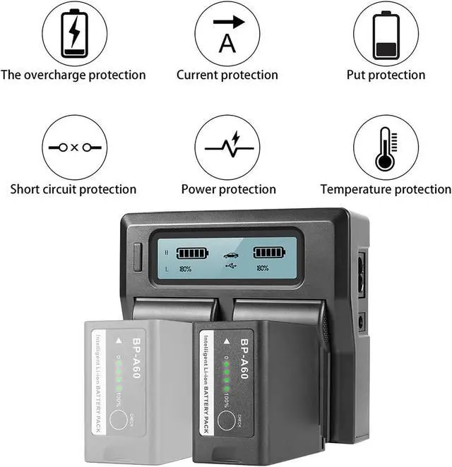 FULL ONE Convenient Charging Method: Common micro-external battery gives you more options than a standard battery charger, and Charges 1, or 2 BP-A60 batteries simultaneously and smart LED light turns to red when charging and green when complete. (Adapters and Power bank sold Separately - WARRANTY - Batteries include a one-year warranty