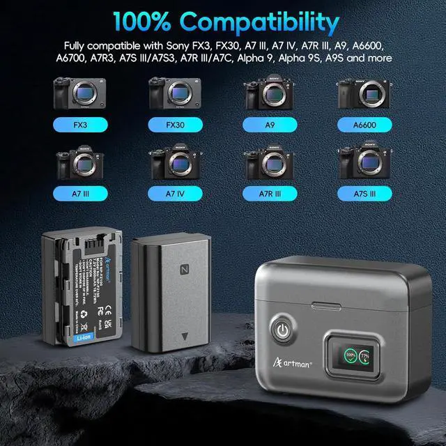 Real-time LCD Crystal Charger: Stay in control with Artman's intelligent LCD display, showing precise charging status for each NP-FZ100 batteries. Prevent unexpected power loss and shoot with confidenceperfect for reliable session planning