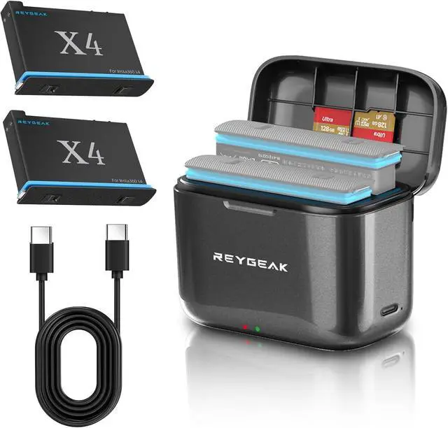 • Tailor Made for Insta360 X4With two replacement batteries only designed for Insta360 X4, which can storage and charge to reduce the situation that you have no power used and can't find them in daily use. It can provide more power for many shootings and the long time video recording when out or traveling