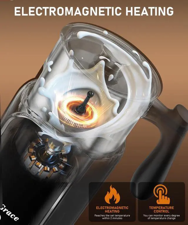Premium Froth: Unlike conventional milk frothers, this model employs electromagnetic heating and coil-driven agitation. Its motor achieves 1, 200 rotations per minute, yielding froth three times denser than traditional machines. Enjoy your exceptionally fine, velvety foam.