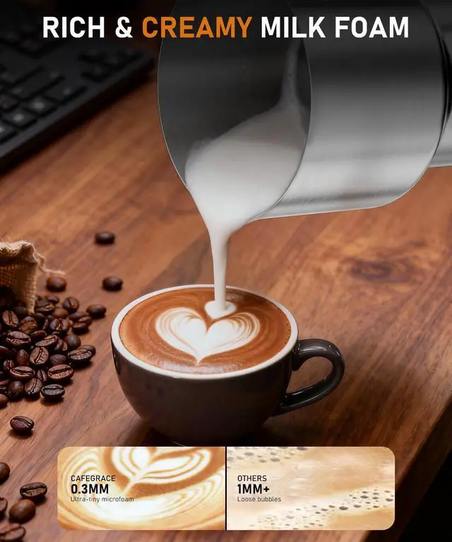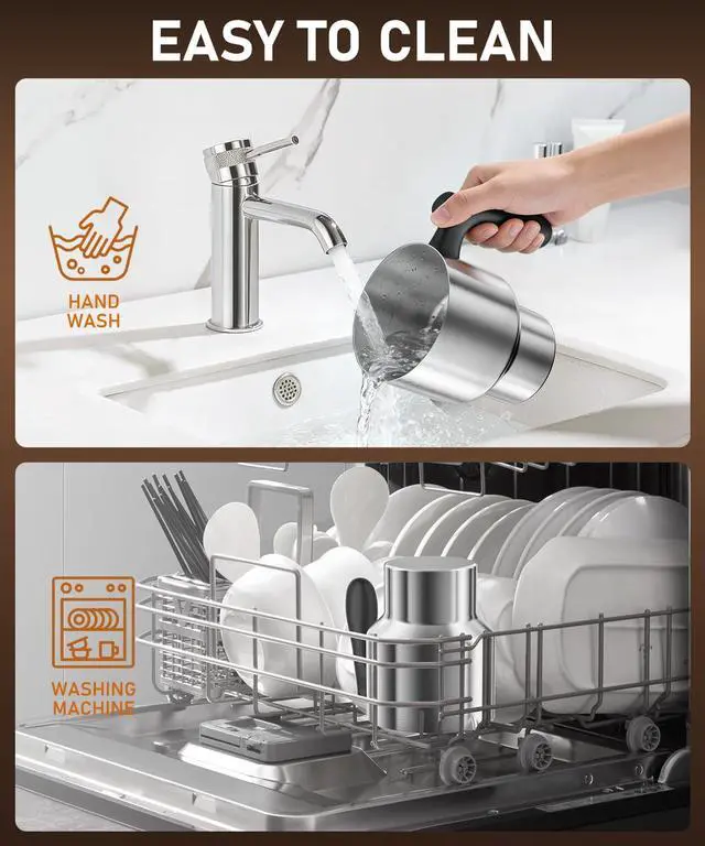 Dishwasher-safe: The stainless steel frothing cup is dishwasher-safe for simple, efficient cleaning.