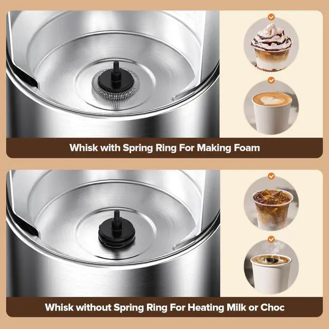 Larger Capacity MAX HEATING capacity is 500ml ( 17.6 oz), MAX FROTHING capacity is 300ml ( 10.6 oz).