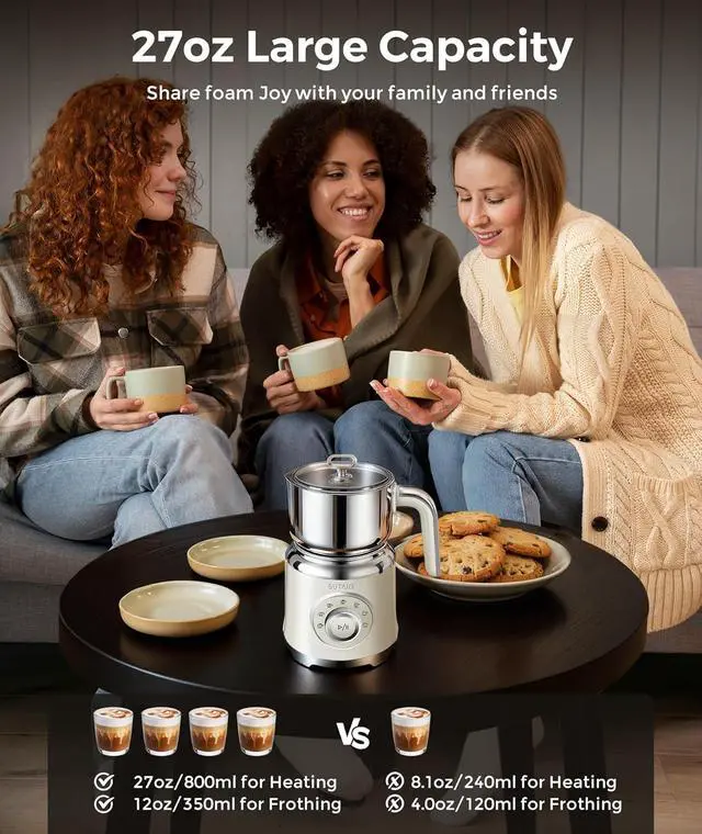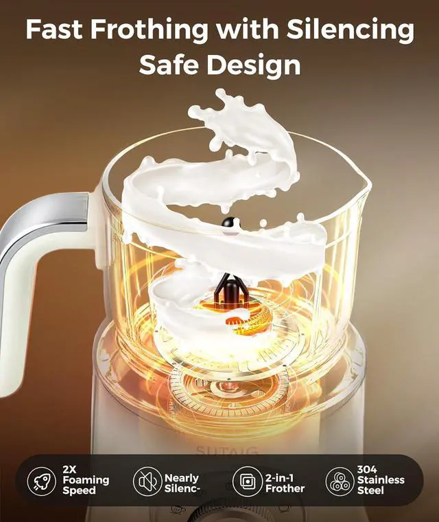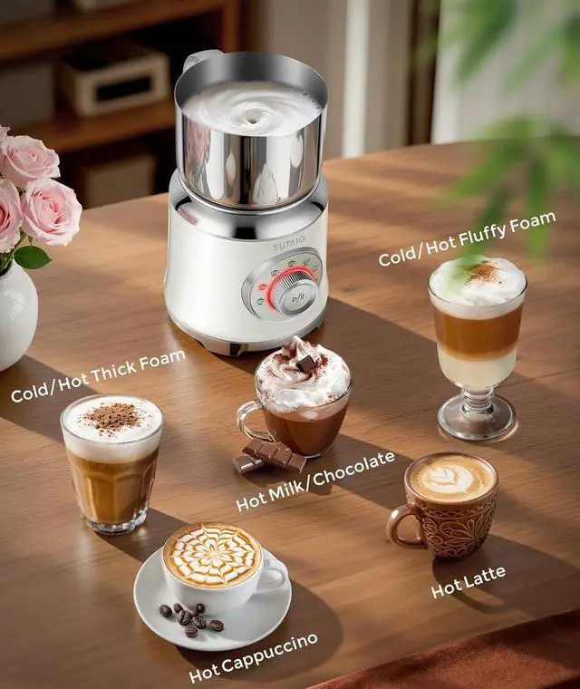 Versatile 4-in-1 Design One-touch controls for Hot Dense Foam, Hot Airy Foam, Heated Milk, and Cold Foam. Includes an automatic 30-minute keep-warm function to ensure your milk stays at the perfect temperature