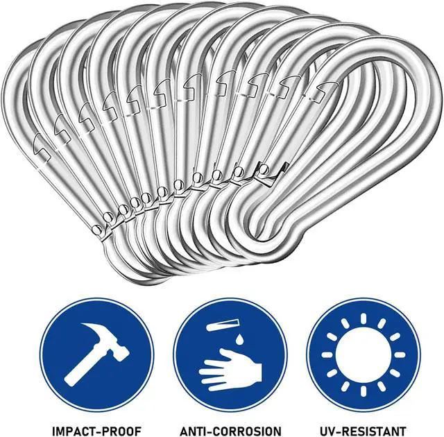 VERSATILE AND USEFUL SNAP HOOKS CARABINERS: Metal snap hook has a wide range of applications, and you can use clips to hanging ropes, flag poles, handbag, rings, cords, keys; In addition, 2inch carabiner clips can be used for boating, fishing, hiking, camping, fitness, backpack, chains, pet; Not for climbing