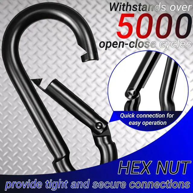 Operate Carabiner Clip: The versatile hardware for binding, rigging, or anchoring enables speedy connection or disconnection of key rings, ropes, and chains, with one-handed operation taking less than a second; This makes it an excellent option for key chains, outdoor gear, and beyond