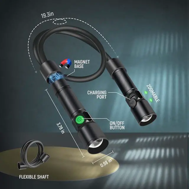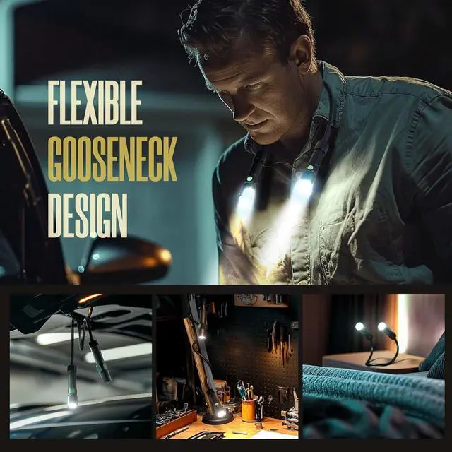 Flexible Gooseneck: The gooseneck is made of flexible material, allowing for 360-degree adjustment. At 19 inches long, the gooseneck enables you to direct the light exactly where you need it. The dual heads of neck work light can be adjusted and locked independently to deliver a wider beam of light of up to 90 degrees.