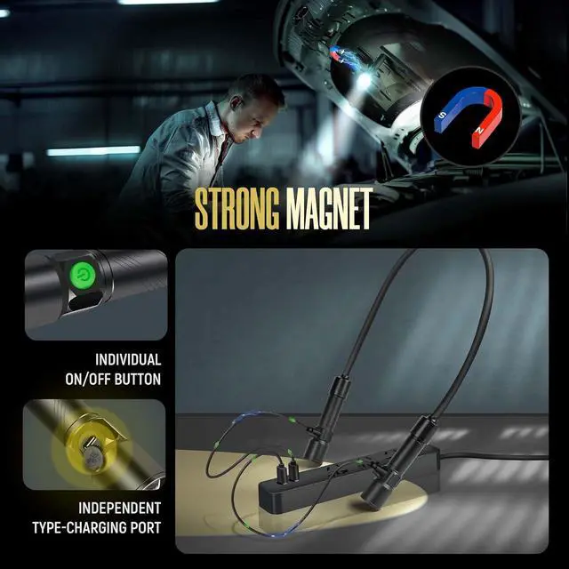 Fast Type-C Charging: This neck-hanging flashlight is equipped with a high-performance rechargeable battery. You can use this rechargeable neck light for up to 3 hours. The 2 bright small flashlights come with separate On/Off Button, allowing for longer sustainable lighting when used separately.