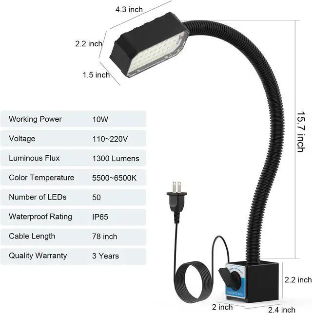 Wide Application. Use our flexible arm light as your machine light. Led lamp magnetic base is great for sewing machines, metal lathe, mill, drill press work, machinist light, bandsaw, work bench, 3D printer, and as wood turning tools and accessories. We provide two-year quality assurance. Please feel free to contact us if you have any doubt.