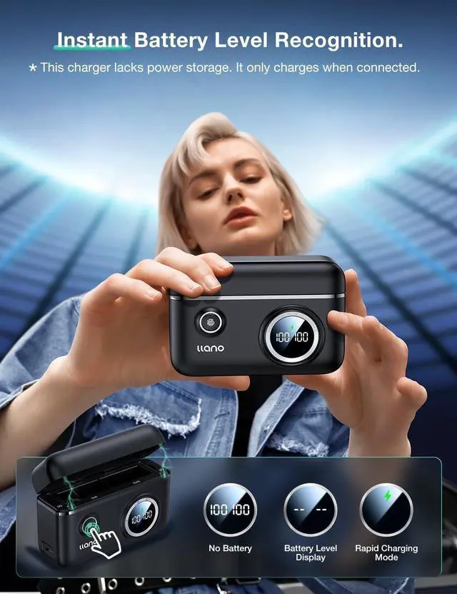Real-Time Battery Monitoring with Smart Digital Display: Instantly see battery levels and charging progress with our crystal-clear digital screen. No more guessingjust plug in, read, and shoot. Whether you're a professional filmmaker or hybrid shooter, this intelligent display adds precision to your gear management.