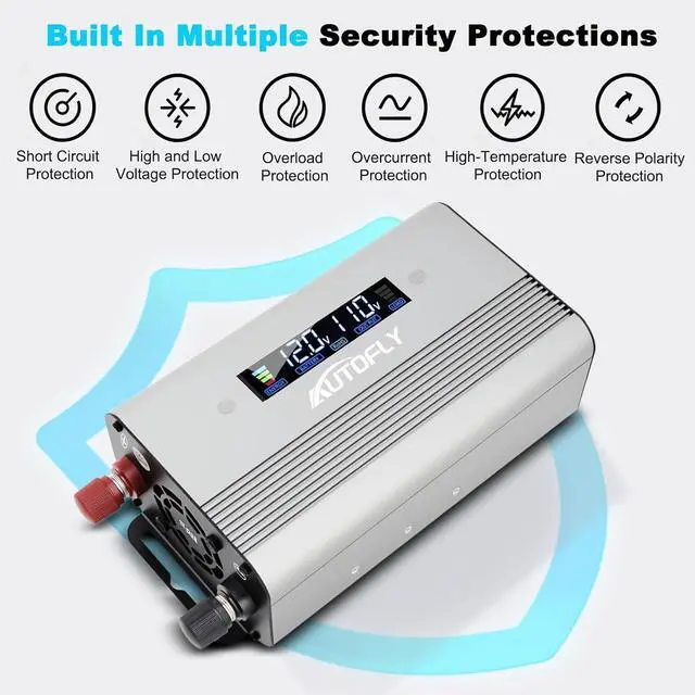 The Sine Wave Inverter has well placed thermal protection sensors, The aluminum alloy casing with a few ripples, Unique vents and also a built-in FAN which comes ON under NO any loads or when the Inverter becomes Hot Once Powerred. The LCD smart screen will display the DC input, AC output voltage battery capacity and power load.