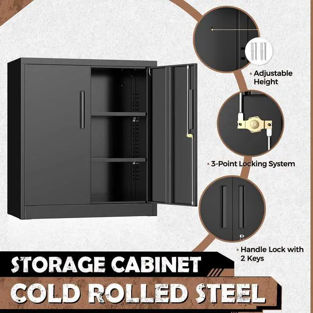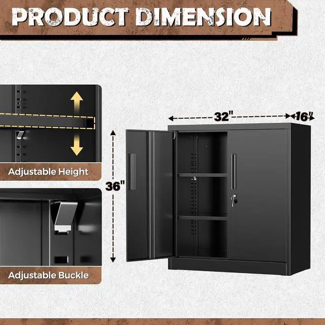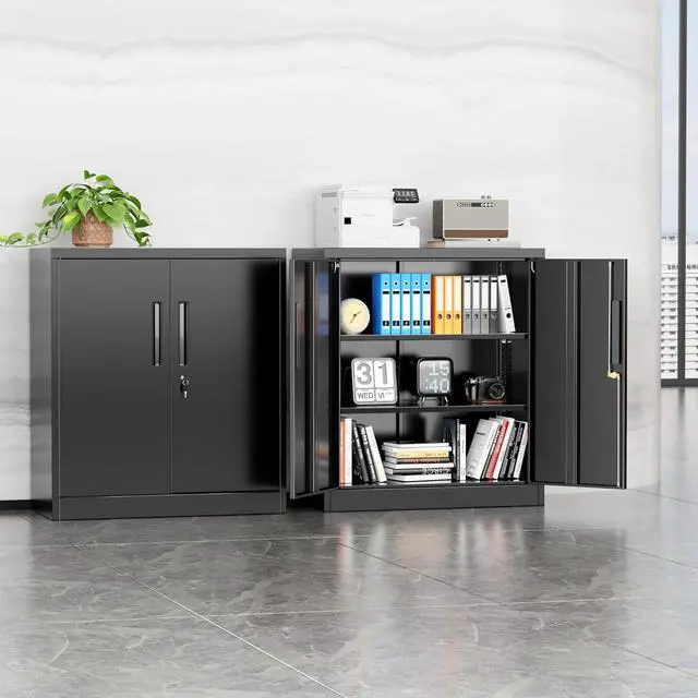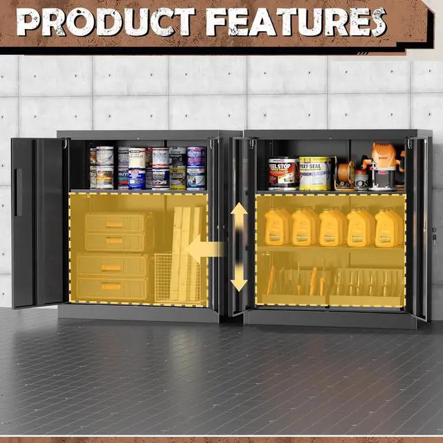 Humanized and Practical Design garage storage cabinet door doesn't make too much noise when you close the door. If you prefer a quiet cabinet, then our file cabinet will be a great choice. The 2 doors open at an angle of 180 degrees, making it easy for you to retrieve items. To prevent accidental collisions, there are 2 reserved holes at the back of our lockable storage cabinet. When you receive the goods, it is selectively for you to fix metal storage cabinet on the wall.