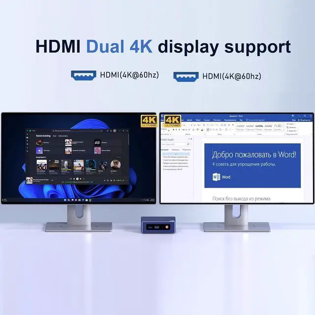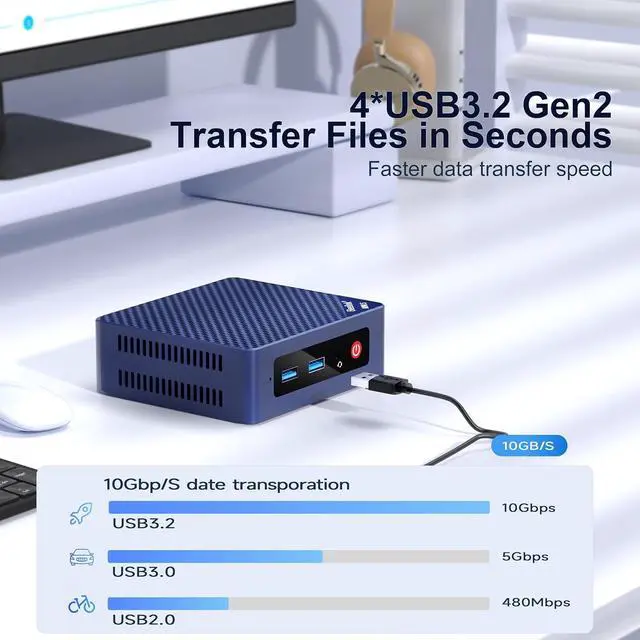Dual HDMI 4K@60Hz Display mini computer has 2 HDMI interfaces, supports 4k dual-screen simultaneous display, and realizes multitasking. Browse the web, multimedia playback, equipped with 4 USB 3.2 Gen2 ports (10Gbps), 1*Gigabit Ethernet ports, expand multiple workspaces. The computer supports automatic power-on, WOL wake-up and automatic power-on functions, which is very suitable for use as a server
