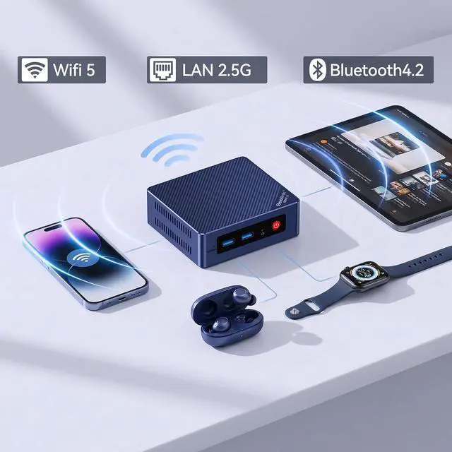 Stable ConnectionN95 Mini PC is equipped with a 2.5G bps LAN port, providing ultra-fast, streaming, or heavy downloads. For wireless connections, it supports Wi-Fi 5( 802.11 ac) for smooth browsing and streaming, as well as Bluetooth 4.2 for quick and reliable pairing with your devices. more stable and efficient to connect to multiple wireless devices such as projector, printer, monitor, speakers and etc