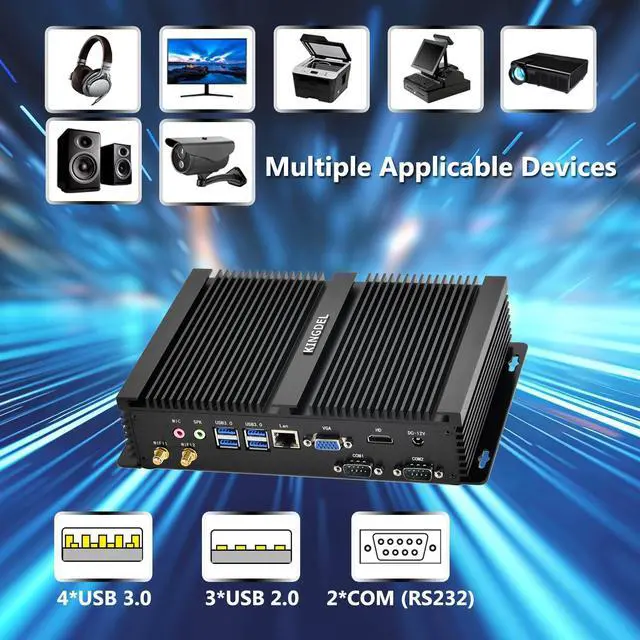 Fanless Industrial Computer, Mini PC, core i7 8th Gen. CPU, 16GB RAM 512GB NVMe SSD, 4K: 4096x2304, HD Port, VGA, 4xUSB 3.0, 2xCOM RS232, WiFi+Bluetooth, Metal Case