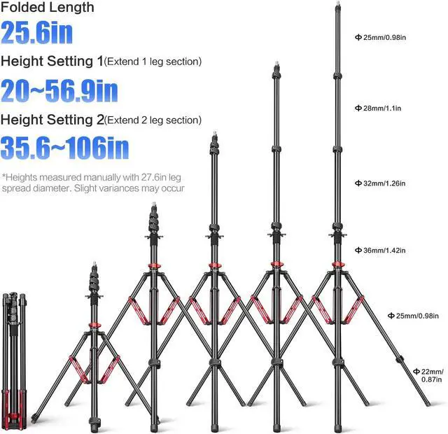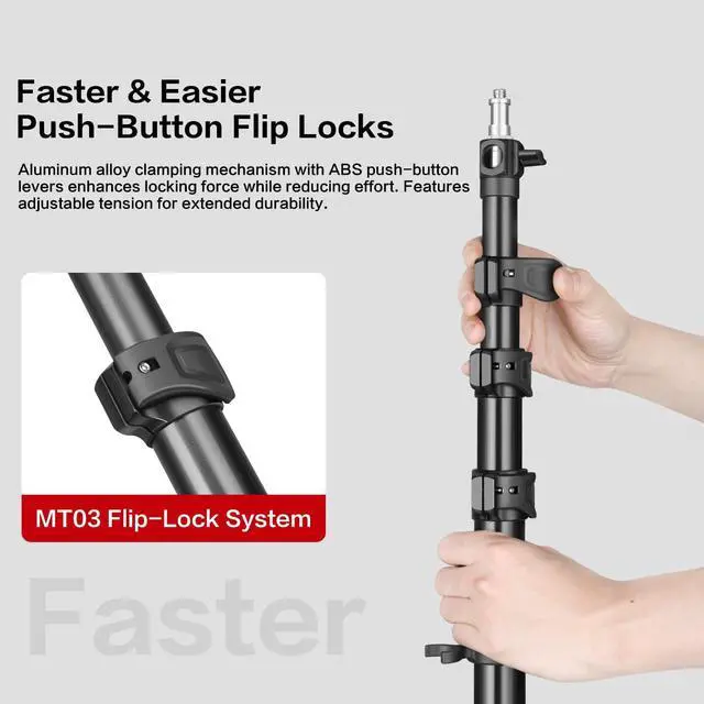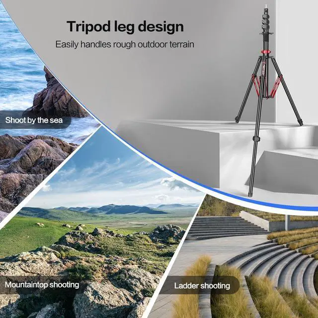Aerospace Alloy PortabilityReverse-folds to 25.6" travel tripod size at just 2.1 kg integrates carabiner + weight hook forlight stand stability in windy studios or outdoor shoots.