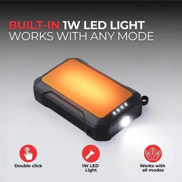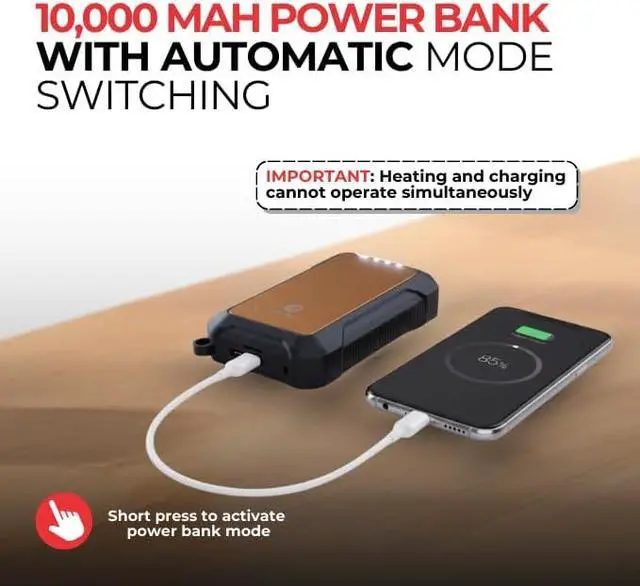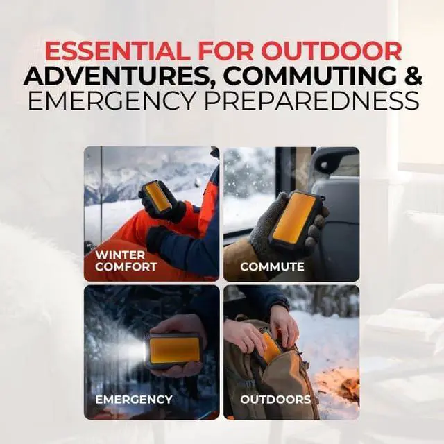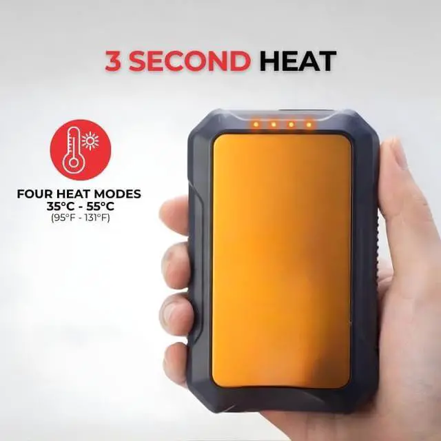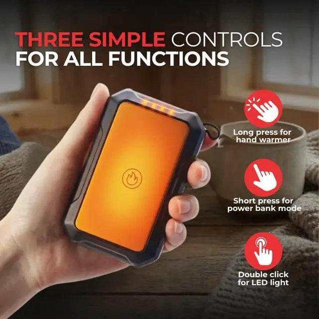 3-in-1 Utility: This hand warmer offers three functions in one-warmth, power, and light. The 10000mAh battery provides adjustable heat to keep you warm, while also doubling as a power bank to charge your devices. The hand warmer power bank recharges via USB and includes LED status lights to keep you informed. Built for rugged use, the rechargeable hand warmer with power bank is ideal for hiking, camping, and commuting, ensuring you stay warm and powered up wherever you go.