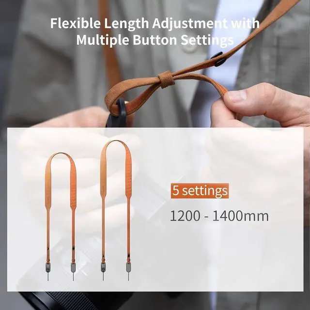 Length SdjustableWe designed button to adjust the camera strap length for different use like camera neck strap, camera shoulder strap, and camera crossbody strap, also to meet diffenent demand of heights and sex. There's two size for you to choose so that it will be compatible for either male or female photographers.