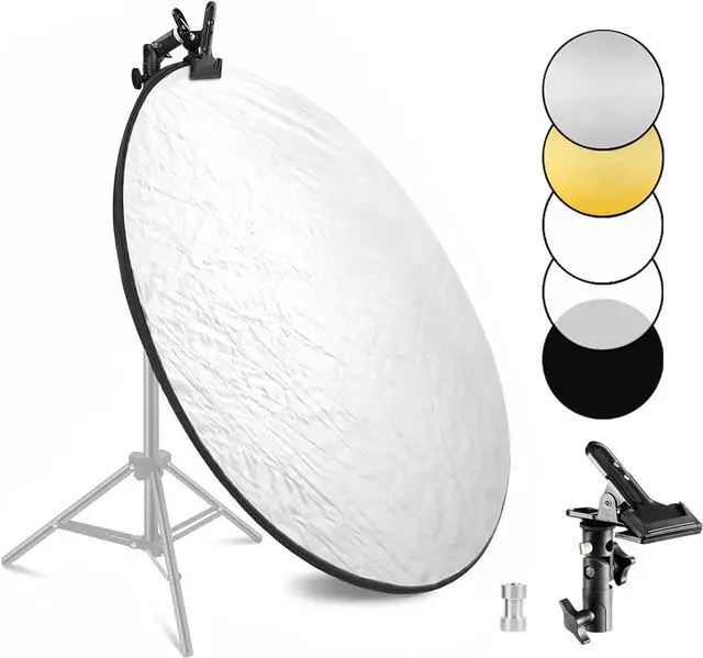Portable 43inch/110cm Light Reflector with Clamp,5 in 1 Collapsible Multi Disc Photography Reflector Translucent,Silver,Gold,White,Black for Studio Photography Lighting and Outdoor Lighting