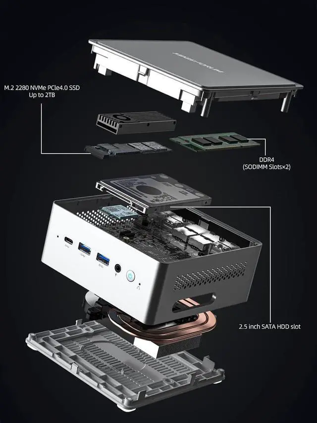Package Contents 1x NAB6 Lite Mini PC, 1x US Power Adapter, 1x HDMI cable, 1x SATA cable for 2.5" HDD, 1x Manual.