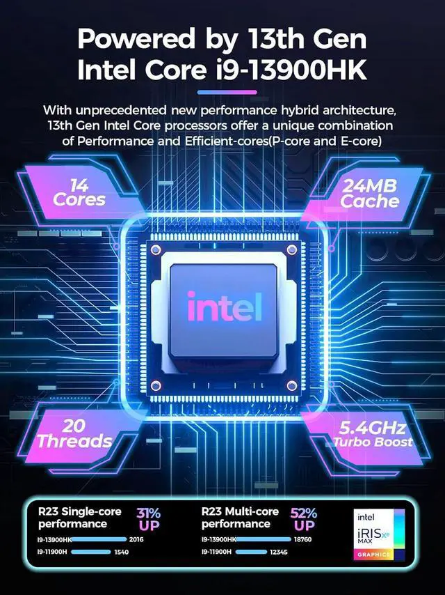 [64GB DDR5 + 1TB M. 2 NVMe PCIe 4.0 SSD] T1 mini gaming pc has a built-in dual channel 64GB DDR5-5200mhz RAM (extended up to 64 GB) and 2TB M. 2 NVMe PCIe 4.0 SSD(PCIe 4.0 SSDs offer twice the speed of PCIe 3.0 SSDs and four times the speed of SATA SSDs). An additional 2x M. 2 2280 SSD slot, expandable up to 8TB.