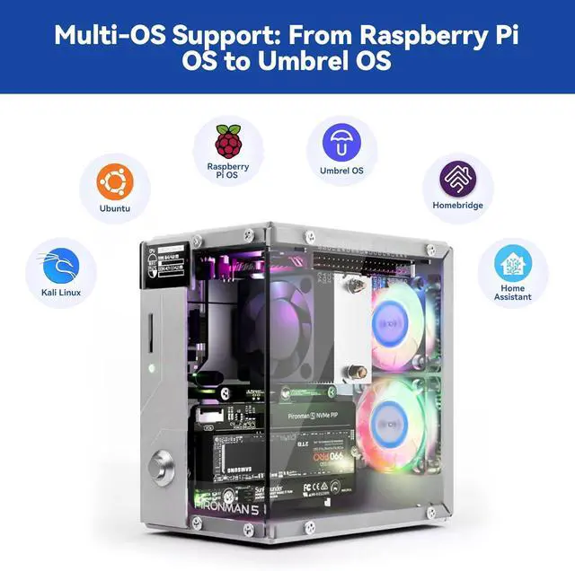 OLED Display for Instant Insights: The Pironman 5 includes a 0.96 OLED display, providing immediate updates on CPU and RAM usage, temperature, IP address, and more