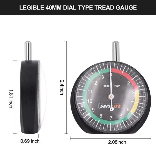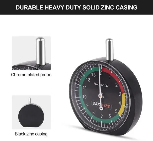 PARTICULAR DESIGN, Black casing black dial of tire tread depth gauge, Metal detect probe, easy for measurement and precise. Clear calibration, fine workmanship, simple and compact appearance.