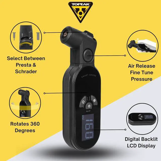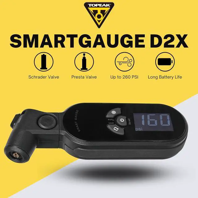 SmartGauge D2X Digital Tire Pressure Gauge - Accurate and Easy-to-Use Bike Pressure Gauge with Digital Display - Measures PSI for Presta and Schrader Valves
