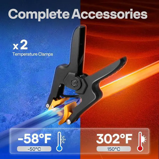 COMPLETE ACCESSORIES: Comes with two temperature clamps and a heavy-duty hose set (three hoses with locking valves) for fast and efficient system analysis and optimization; A pair of temperature clamps that can test real-time temperature when connecting to the air conditioning pipes; The hook makes it easy for you to hang the gauge and free your hands; The included carry case makes it easy to transport and store between jobs;