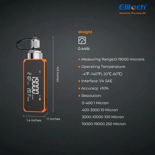 WIDE MEASUREMENT RANGE& HIGH ACCURACY: Used to test system leak and discern vacuum pump quality of the evacuation in an HVAC and refrigeration system; accurate measurements from 19, 000 Microns (atmosphere) to 0 Micron.