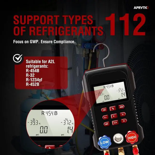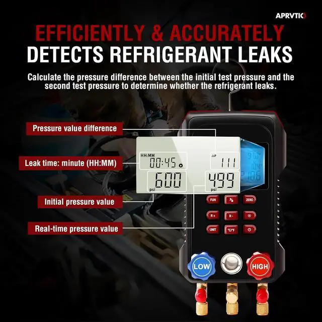 Pressure Loss Test Feature: Identify leaks and verify system integrity with the built-in pressure loss test function of the r454b gauges, which records pressure changes over time for reliable analysis.