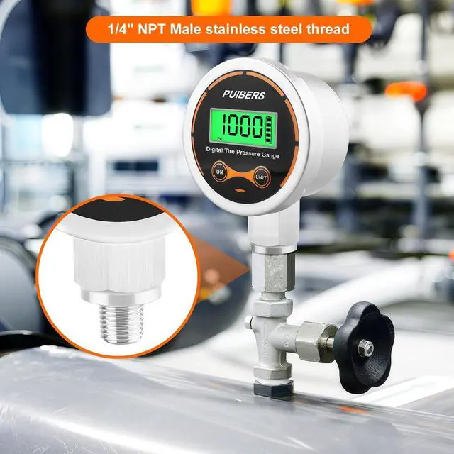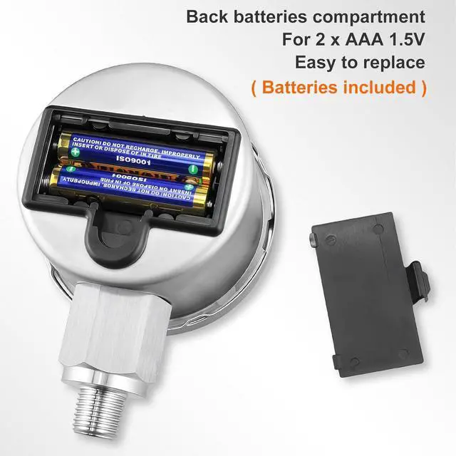 User-Centric Design with Auto Power-Off Designed for ease of use with a standard 1/4 NPT male connector for a universal and secure fit. It comes equipped with 2 included AAA batteries and features an energy-saving mode that automatically shuts off after 3 minutes of inactivity, significantly extending battery life.