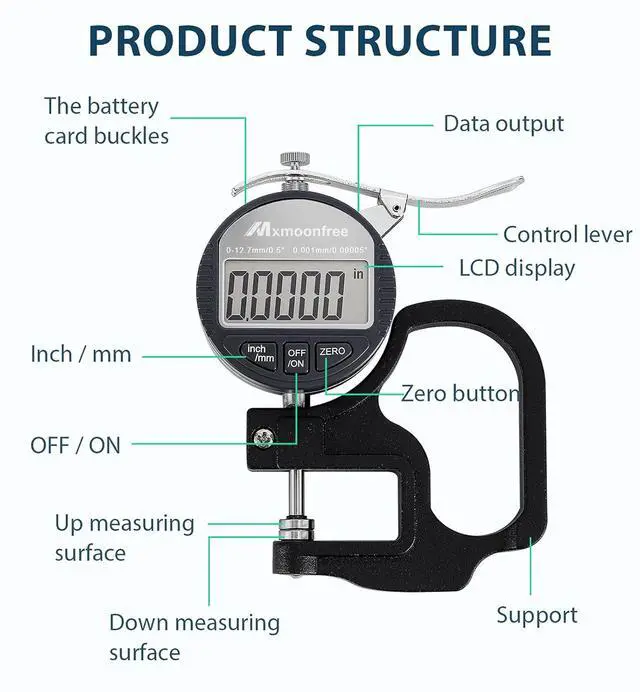 [Application] - The digital micrometer caliper is equipped with a large LCD display, which is used to accurately measure the thickness of materials, such as sheet metal, various papers, films, leather and wires.