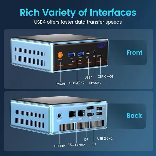 COMPACT AND SPACE-SAVING DESIGN: Measuring only 5x5x2 inches, the WO-4 Mini PC is a small but powerful micro PC with a wide range of interfaces supporting your office and home audio-visual needs. The pure copper heat pipe keeps it cool, while the built-in silent control chip keeps the system quiet for a comfortable experience.