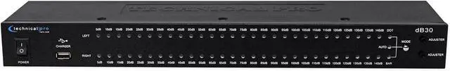 For the times when standard displays dont cut it, get the ultimate in control with the DB30 decibel display. Designed for professional sound engineers, audiophiles, and hi-fi enthusiasts, the DB30 provides readings over an enhanced spectrum that incorporates sounds from a whisper to a gunshot. Its intuitive LED readout comes with two settings--dot and bar--and ranges from 5 dB all the way up to 140 dB. For multi-platform connectivity, the DB30 comes with an RCA input and output that allows you to connect a variety of equipment common to professionals and casual listeners alike. As a rack mountable unit, the DB30 integrates seamlessly into standard equipment lineups and comes with features that make it a multi-purpose powerhouse. In addition to providing information about volume, the DB30 comes with an 8 outlet, rear-facing power supply that allows you to power your system while consolidating equipment and making cord management easy. To charge smartphones, music storage devices, and other equipment, the DB30 also comes with a front-facing 5V USB power supply.