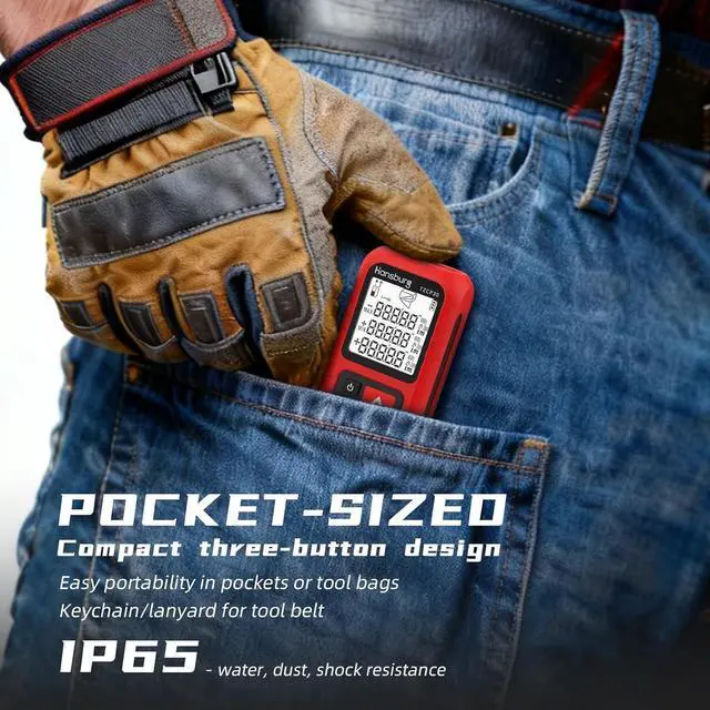 [Pocket-Sized Laser Distance Measure] Compact three-button design with comfortable grip. Constructed from high-quality ABS material for easy portability in pockets or tool bags. Includes keychain/lanyard for secure belt or tool belt attachmentideal for outdoor work and mobile measurements to boost efficiency. With IP65 rating for water, dust, and shock resistance, it withstands rainy, dusty, or damp conditions, ensuring lasting durability.