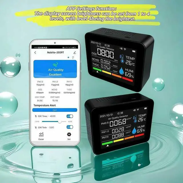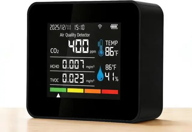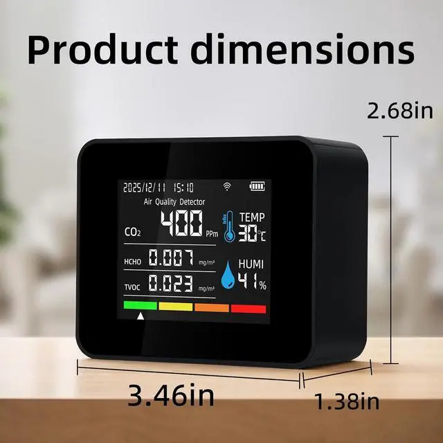 REAL-TIME TRACKING&SMART APP: This air quality monitor supports continuous monitoring and real-time data updates. Historical data can be viewed through curve analysis for long-term air quality assessment. The smart APP can store and display historical data curves for the entire past year.