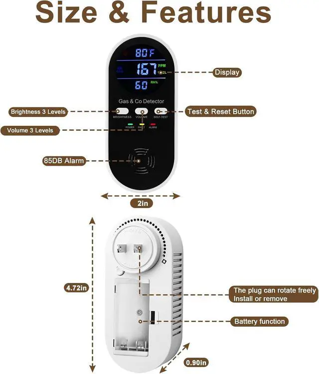 85dB Alarm: Immediately triggers visual and audible alerts when hazardous gas concentrations reach preset thresholds (Explosive Gas 5% LEL or Carbon Monoxide 150 PPM).