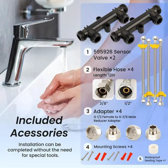 DIY-FRIENDLY INSTALLATION IN MINUTES: Designed for hassle-free setup, each kit includes two 12-inch supply lines, two ½ FTP to MPT reducing fittings, mounting screws, and all hardwareno extra tools needed! Compact sizing fits tight spaces, and parallel installation with existing sensors can even speed up recirculation. Professional help isnt required, though reviewing the included manual (with troubleshooting tips) is recommended for smooth DIY installation.