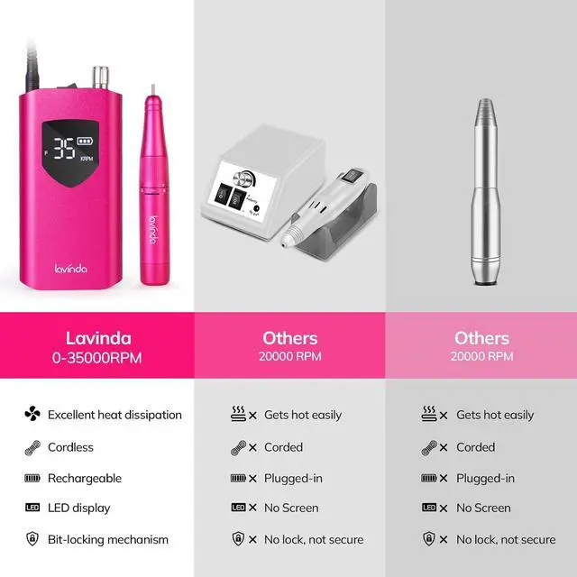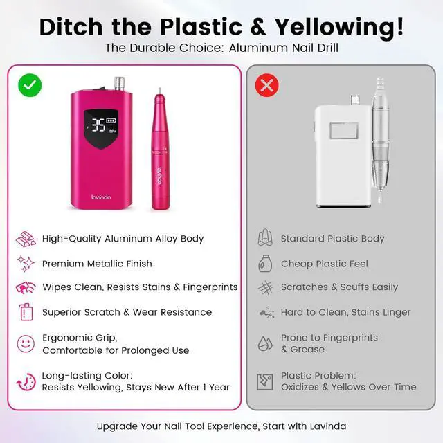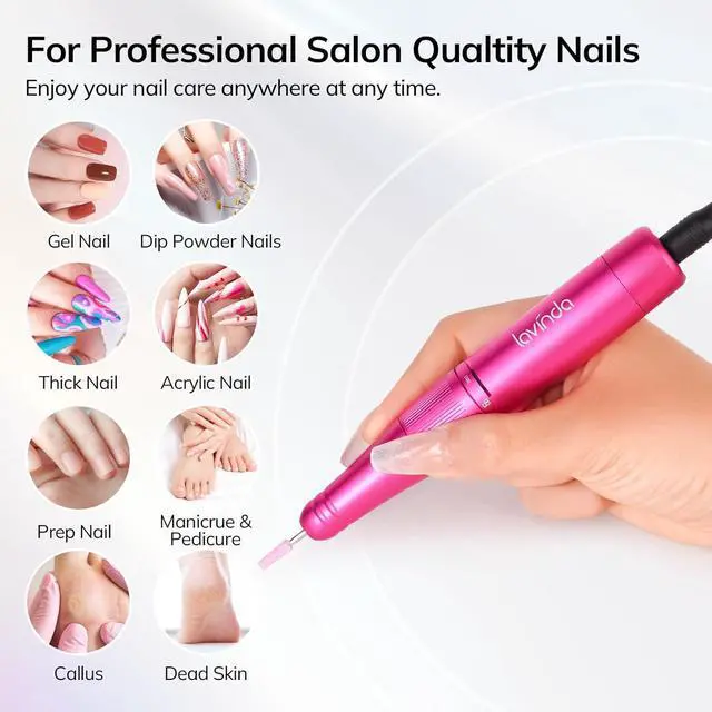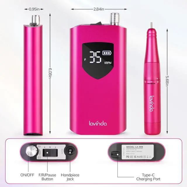Ergonomic Handpiece Design: Made of high-quality aluminum alloy, the handpiece of this electric nail drill is designed for comfort and efficiency. The well-ventilated holes dissipate heat effectively, while the pencil-shape and lightweight design reduce hand fatigue during prolonged use. Compatible with all 3/32 shank bits, it offers precise control.