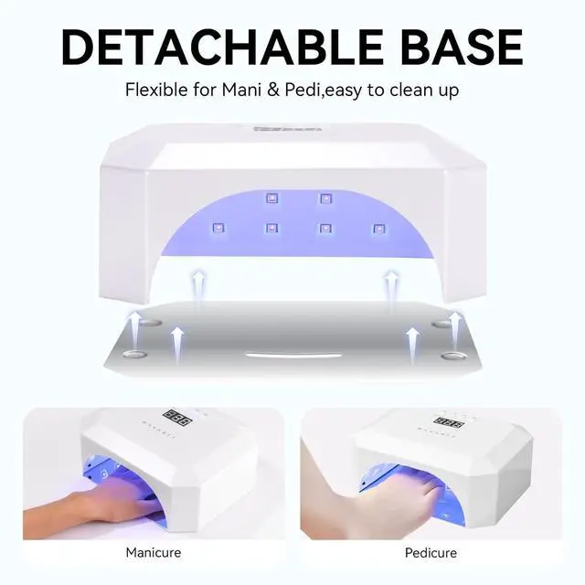 Timer Setting: nail lamps for gel polish is designed with auto infrared sensor. Hand in, light on; Hand out, light off. The 10s/30s/60s/90s timing setting with precise LCD digit display provides you with different time curing experiences in different nail styles.