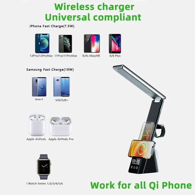 3. Smart Wireless Charging Station 15W Qi Fast Charging for iPhone/Android phones Dedicated slot for Watch charger (Charger not included) 5W charging pad for wireless earbuds