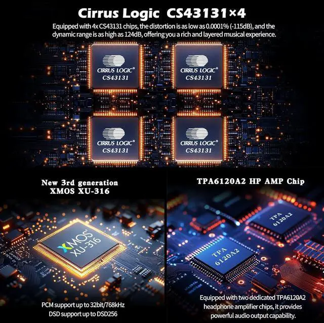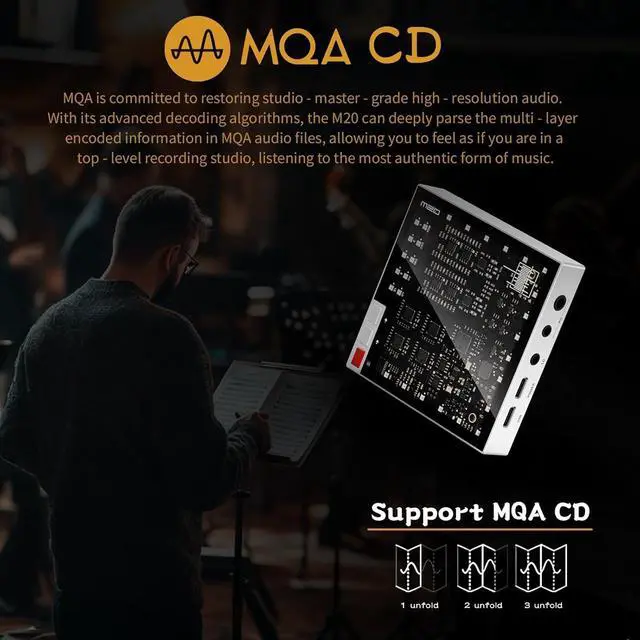 Support MQA/MQA-CD decoding MQA CD DAC supports MQA full decoding and is compatible with MQA - CD. This means it can deeply analyze the multi-layer encoding information in MQA audio files and perfectly restore the details contained in every link of music from recording to mixing.