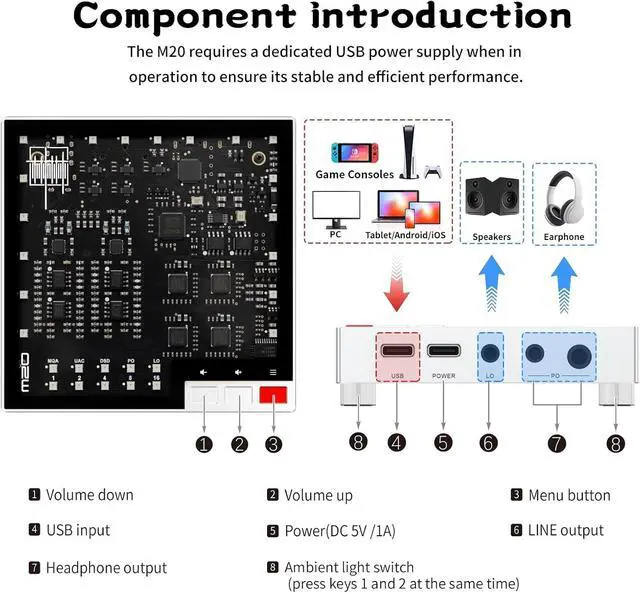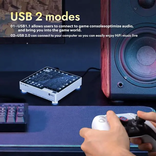 PCM Filter Gaming DAC has built-in PCM filter, Fast, Low latency filter, Fast, Phase compensated filter, Slow, Low latency filter, Slow, Phase compensated filter, Non-oversampling, you can enjoy different music effects and music details.