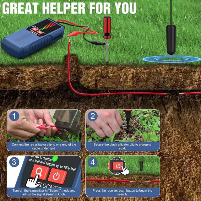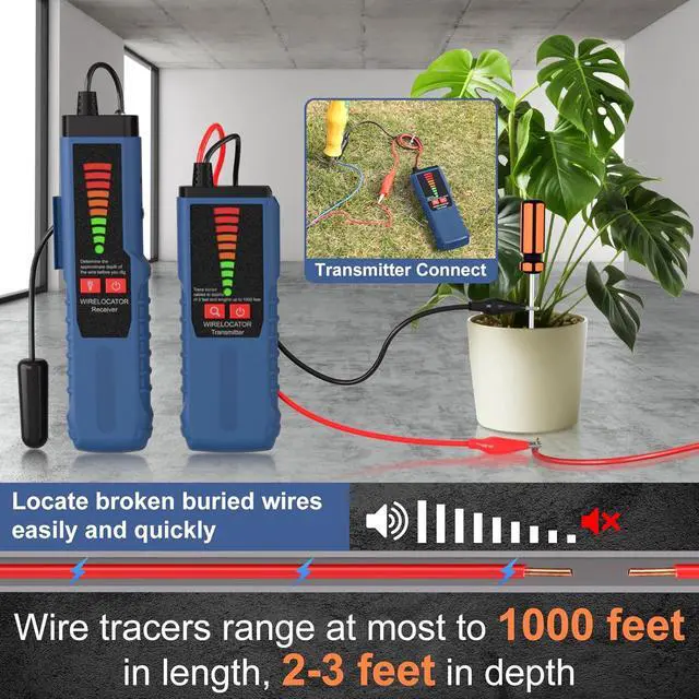 EXCEPTIONAL DETECTION RANGE - Underground wire locator cable tracer with a detection range of up to 1000 feet in length and 2-3 feet in depth, the Wire Locator is portable, efficient, and easy to use