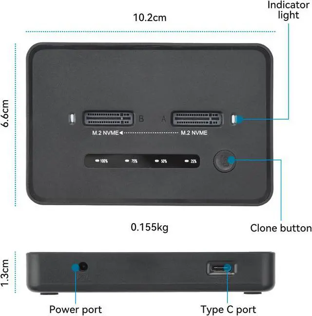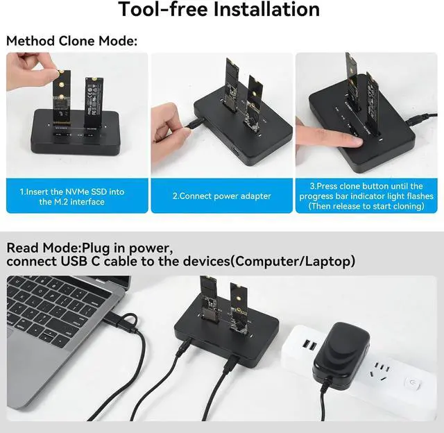 One-Click SSD ClonerThe NVMe dock can be used as a standalone NVMe cloner, allowing you to clone hard drives with just the press of a button. No computer is required; the M. 2 duplicator is capable on its own.