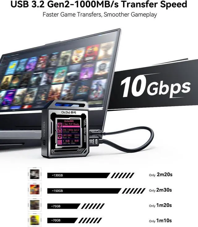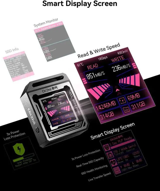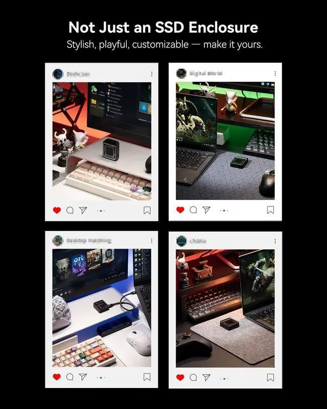 Blade-Inspired Gaming Design& 2230 NVMe Compatibility: Exclusive Blade design with sharp edges and a bold gaming aestheticlooks like a desktop accessory or art piece. Supports M-Key and B+M Key NVMe PCIe SSDs up to 2TB via USB-C with UASP for fast, reliable transfers