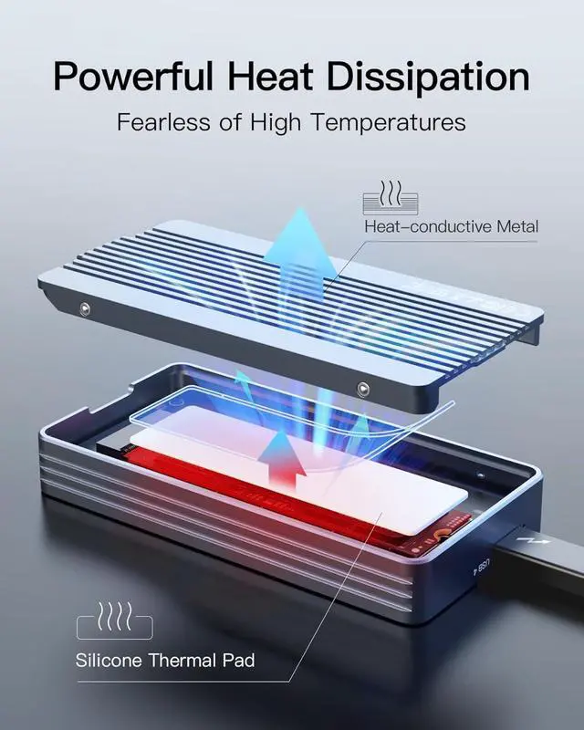 Compact and Portable: This M. 2 NVMe SSD enclosure measures 3.96 * 2.02 * 0.55 inch and only weighs 0.23 lb. It can be easily carried in a pocket, laptop bag, or briefcase for easy use at any time