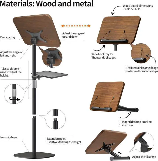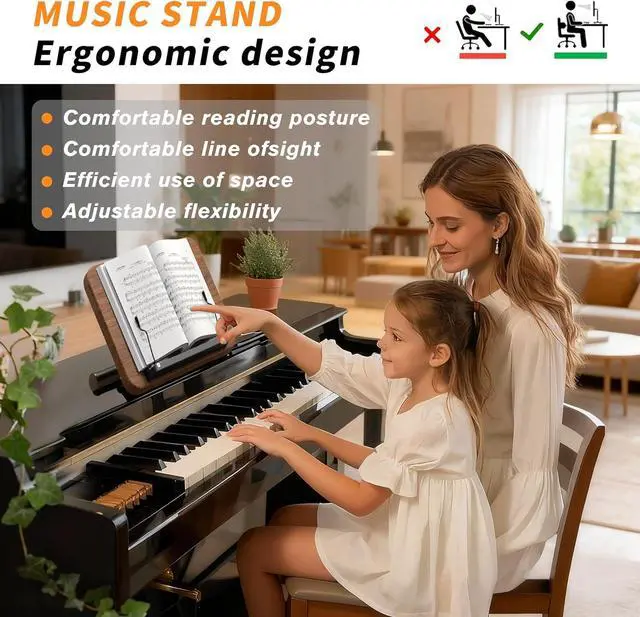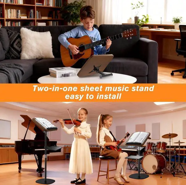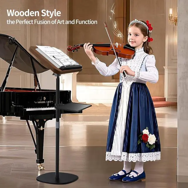 Floor Music Stand Sleek, white solid wood stand with 180° adjustable tray and phone holder. Height adjusts from 16.5" to 51" for music, laptops, books, or projectors. Durable and versatile for home, office, or studio. Perfect for musicians, students, and remote work. Effortless style, adaptable function.