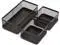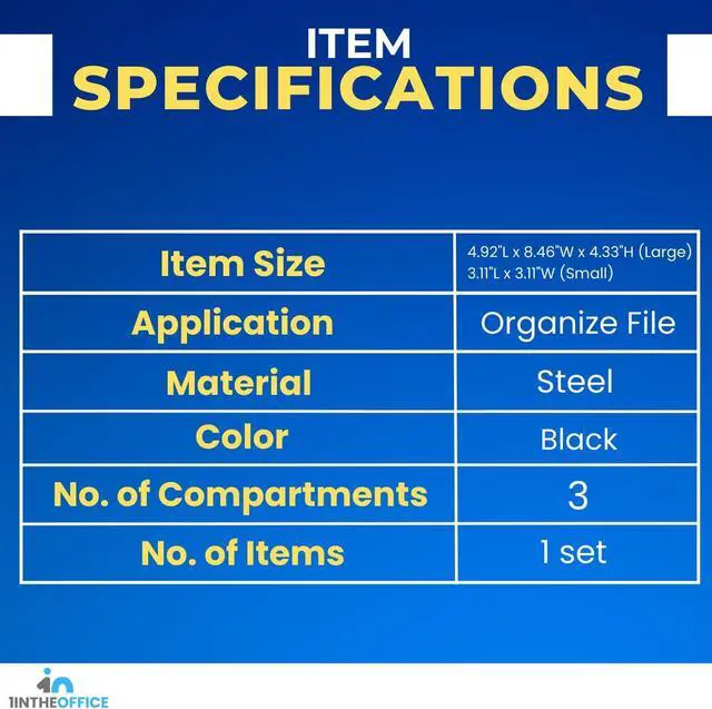 Organizer consists of three stackable storage cups The long compartment is 8.46"W x 4.92"D, the smaller two compartments are 4.23"W x 4.92"D Backed by life time Guarantee