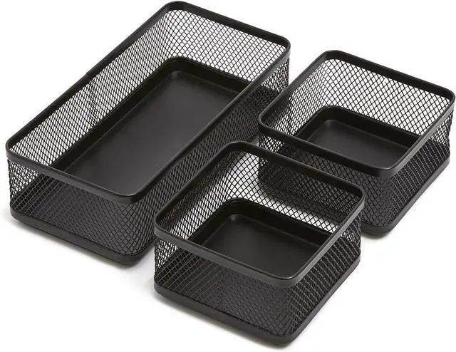Matte black wire mesh organizer adds style to your work space